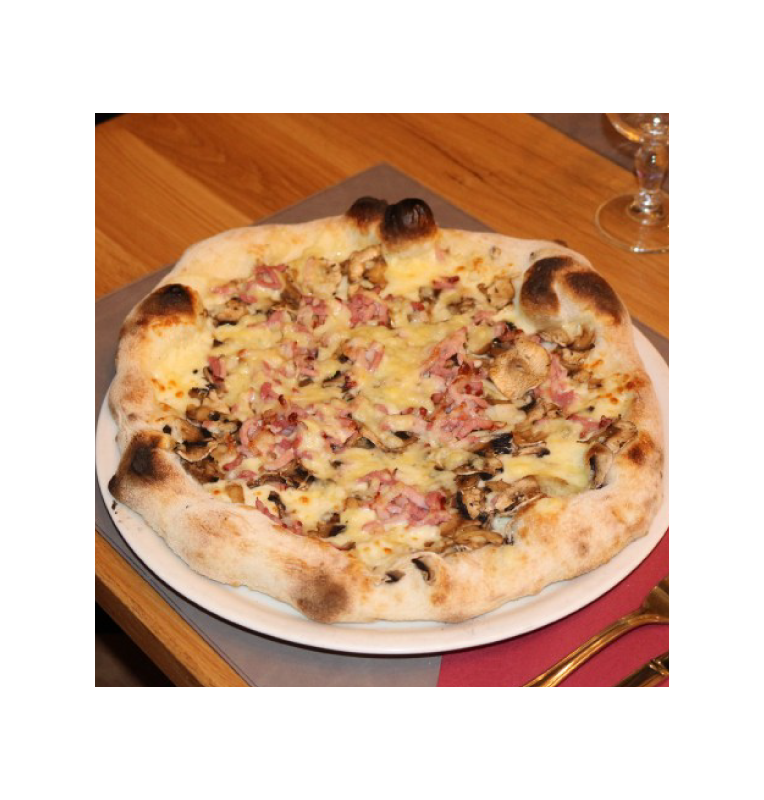 Sauce tomate, Mozzarella, jambon, champignon